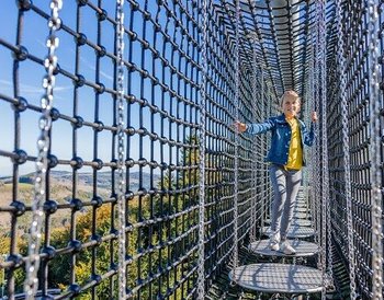 Beim "Programm Erlebnisberg Kappe" geht es zunächst mit der Seilbahn bergauf zur 435m langen Panorama Erlebnis Brücke. Fünf Spaßelemente neben, unter und über dem Brückensteg lassen den Adrenalinspiegel steigen. Über die 40m lange Röhrenrutsche geht es zum Naturerlebnispfad.