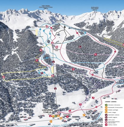 Nur wenige Kilometer südlich des Brenners und umrahmt von den Dreitausendern der Stubaier und Zillertaler Alpen hält das Skigebiet Ladurns (18 Pistenkilometer) Abfahrten aller Schwierigkeitsgrade bereit. Breite, perfekt präparierte Pisten ohne Warteschlangen oder Gedränge schaffen die idealen Rahmenbedingungen für Ihre Schulskifahrt.